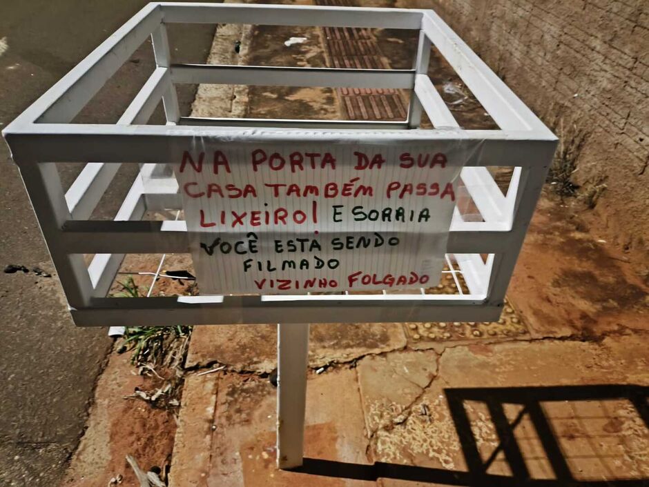 Vizinho folgado! Moradora deixa recado na lixeira e devolve lixo no Aero Rancho (vídeo)