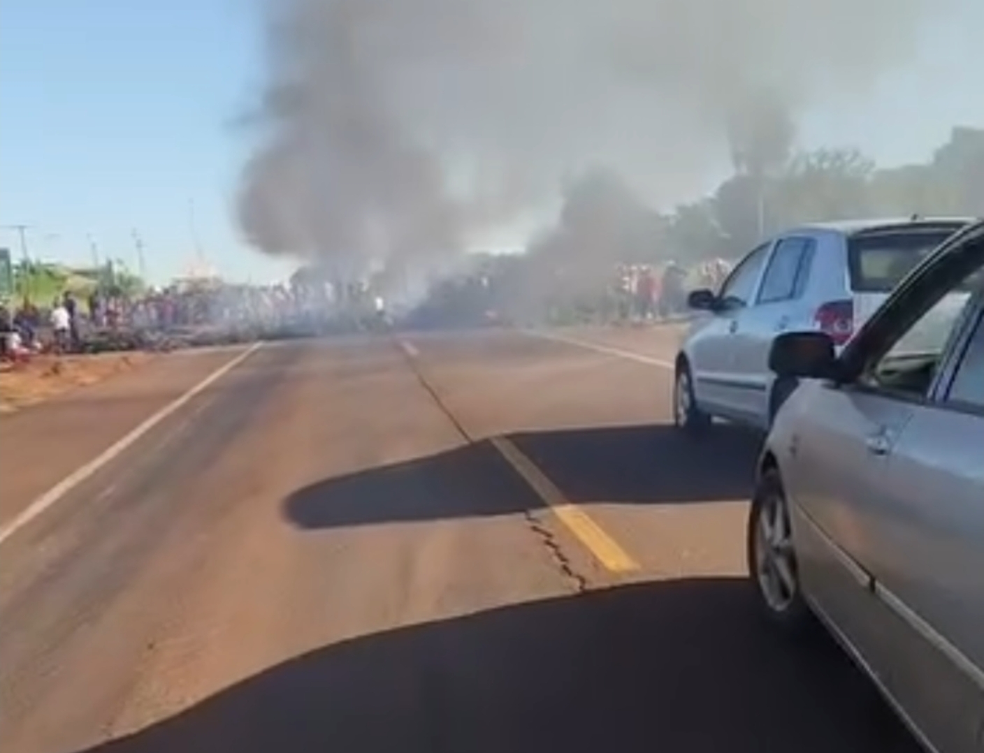 A BR-163, em Campo Grande, foi interditada na manhã desta sexta-feira (20) por integrantes do MST (Movimento dos Trabalhadores Sem Terra). Cerca de 400 manifestantes bloquearam a rodovia na saída em direção a São Paulo desde as primeiras horas do dia.De acordo com informações do portal da Motiva Pantanal, para quem circula pela região, a interdição ocorre entre os quilômetros 466 e 463, no sentido sul. Diante disso, a concessionária responsável pela BR-163 orienta os motoristas a utilizarem caminhos alternativos. No sentido norte, o desvio deve ser feito no km 461, com acesso à MS-040. Já no sentido sul, a recomendação é acessar o km 466, com saída para Sidrolândia.Por conta do bloqueio, o tráfego já registra lentidão, com filas que chegam a aproximadamente 3 quilômetros no sentido sul e 1 quilômetro no sentido norte. Apenas ambulâncias estão autorizadas a passar pelo trecho interditado. A PRF (Polícia Rodoviária Federal) está no local tentando negociar com os manifestantes para liberar a via.